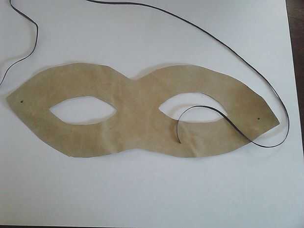 Marcar y cortar un agujero en cada lado de la máscara luego enrosque un cable a través de él. Usted puede ya sea cable do 1 si es elástico o si usted no está seguro de su tamaño de la máscara/de la cabeza... atar una cuerda a cada lado y luego atarlos juntos en la espalda que es lo que mayoría de la gente prefiere hacer. Compruebe el ajuste en la mascarilla para asegurar que esté cómodo. Cuero ligero es el más fácil de usar durante largos periodos de tiempo sin molestar a su piel.
