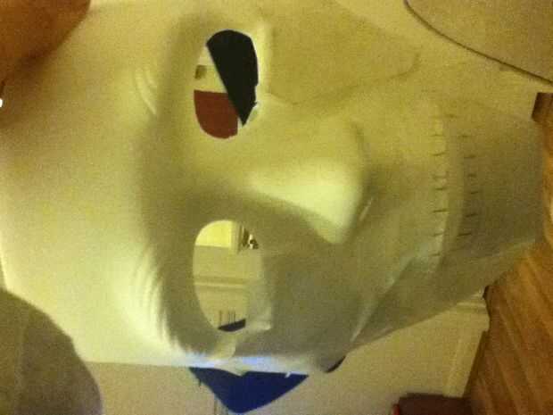 Entonces utilicé recortes de papel y la cinta para ver qué características de mi máscara se vería (lo siento pero no puede orientar las imágenes la manera correcta para arriba :/) Éstos ayudarían más adelante como podía usarlos como referencia de tamaño cuando la escultura