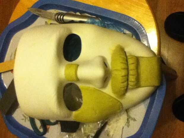 He añadido las mejillas y la nariz golpes por aplanar hacia fuera el miliput y luego cortar la forma que quería usar el cuchillo de mantequilla. Luego añadí las cicatrices con mi navaja.