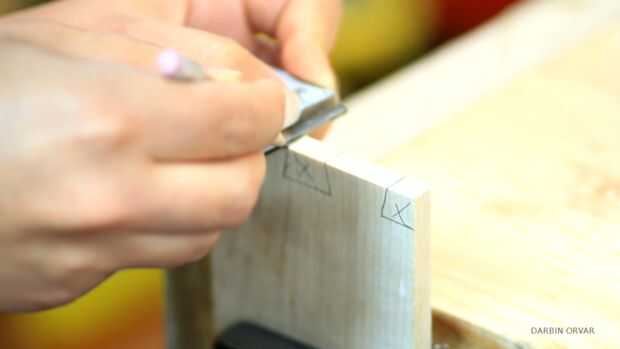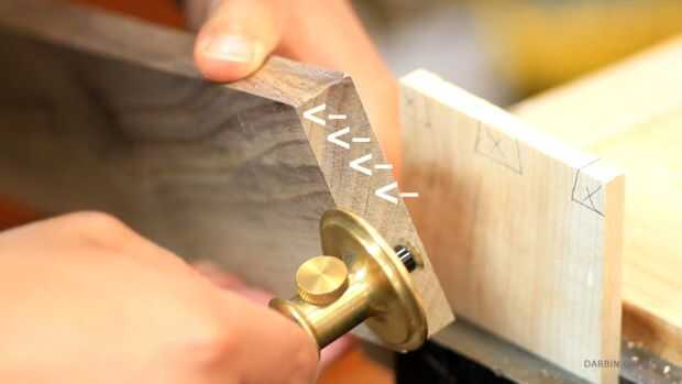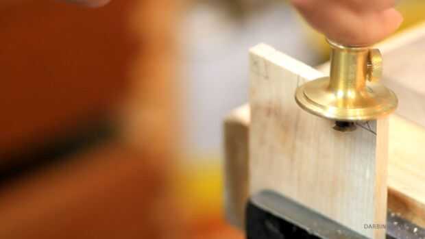 A continuación, estoy marcando la línea de base de los dientes con un gramil. Esto determinará cuánto tiempo estarán las clavijas. También es la distancia de hasta qué punto la Junta de la cola (arce) entrará en el tablón de anuncios (el nogal).