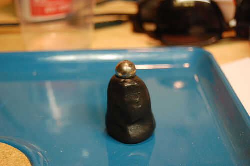 una vez su uniforme negro/oscuro marrón, jugar con él un poco más, antes de retirar los guantes. Si su mezcla bien no mancha las manos, si usted consigue demasiado polvo en él, sólo mezclar masilla tonta fresco más.