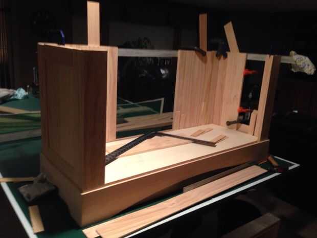 Así que para asegurarse de que todo se mantiene todavía y en alineación exacta con el marco superior, utilicé algunas piezas de hierro de ángulo y sujeta a las esquinas firmemente pegadas, entonces sujeta los listones verticales en ángulo de hierro cuando fui por lo que fueron en la alineación perfecta.