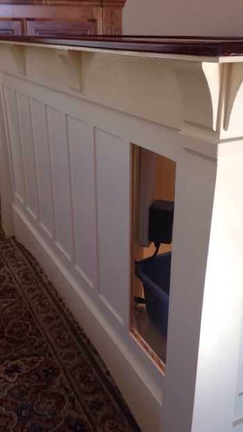 Pero ningún plan - en cualquier lugar - para esto. Así que la solución era subir con un diseño que implica el uso de dos paneles desmontables "secreto" que encajaría en la estética del gabinete.