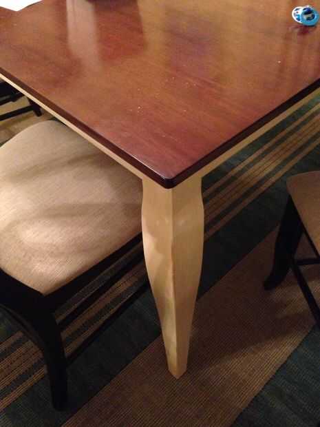Rompieron la primera foto de la mesa cuando me inspiré por su combinación de tinte/pintura. Puedes ver las similitudes entre ella y el stand en la segunda foto.