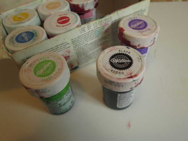 * I´m no estoy seguro pero creo que he tratado un acrílico colores una vez, pero después de disolver comienzan a cristalizar otra vez y hace poco los racimos. Tienes que usar colorante alimentario. Mina fue en forma de jalea o algo asi, que funciona muy bien.