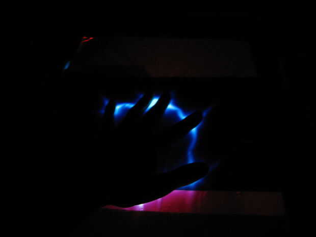 * use el color de la pluma del highlighter y ultravioleta (UV) luz arriba para conseguir el efecto de luz invertida