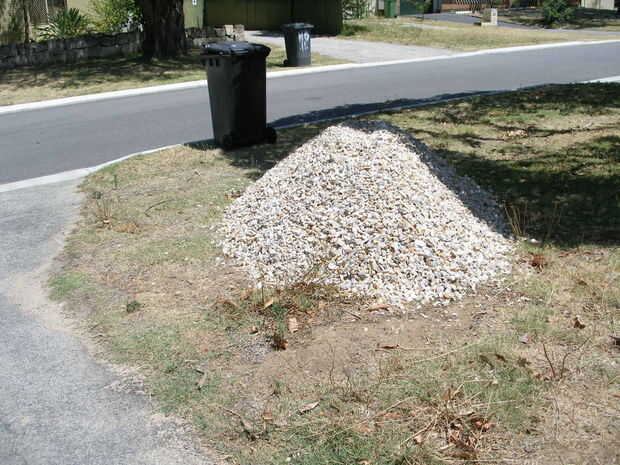 Y las piedras de granito machacado llegaron así que era hora de empezar a colocar entre las piedras y asegurándose de que todo estaba cubiertos piedras paso a paso no era móvil y todo bien.