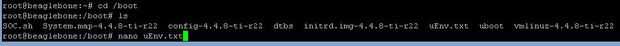 - Una vez que agregamos el comando nano uEnv.txt, verá lo que está en el archivo.