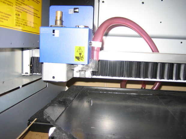 Pegué las losas de plástico a la cama EGX mediante cinta de montaje. Hice un archivo de .3dm CAD que tenía dos orificios de diámetro 1mm, uno a cada lado de una gran losa. Enviar estos al molino de la visual y la EGX que perforar agujeros en el plástico pegado a la cama de la EGX.