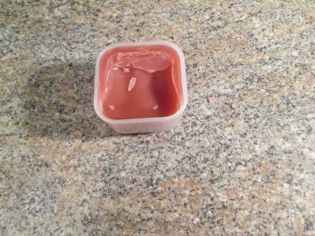 derretida se vierte la cera en el recipiente de plástico. Luego lo pongo en el congelador por unos 30