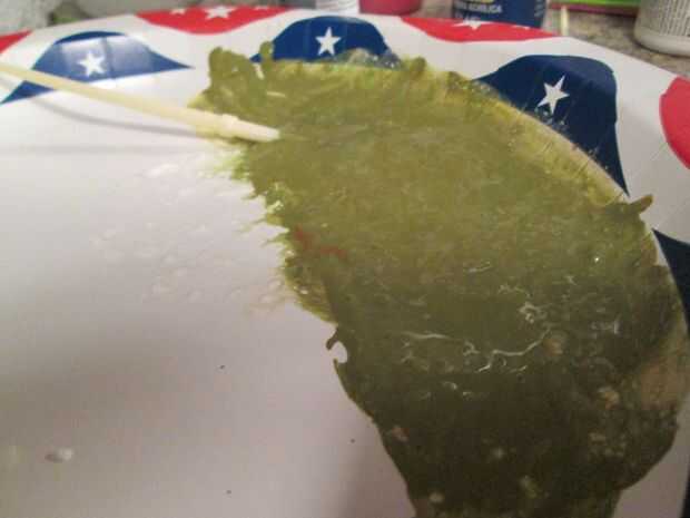 Luego pinta una capa delgada de látex coloreado en el molde y seca con un secador de pelo