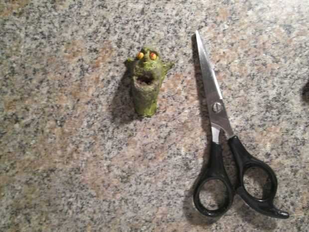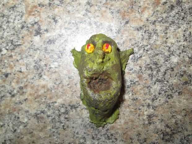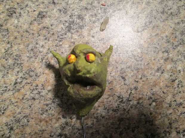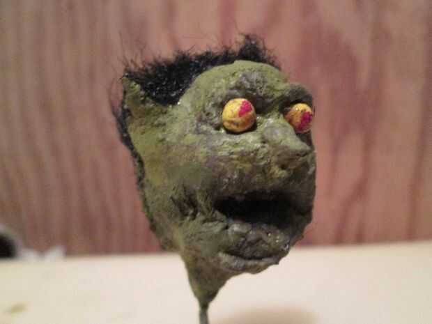 Por último, pegué la cabeza de una figura de movimiento stop que previamente había hecho.