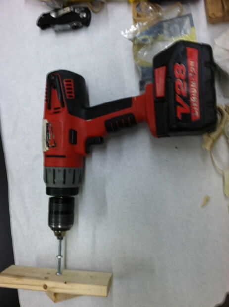 2.) del hilo de rosca el en negrilla a través y segura entre la cabeza del perno y la tuerca. Apriete tanto como sea posible para que la tuerca de mordeduras en la madera garantiza un férreo control. Luego poner el tornillo en la cabeza de taladro y apriete.