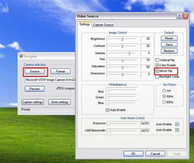 Si desea cambiar la configuración de la cámara tales como brillo, contraste... Haga clic en origen que se abrirá la ventana de la Fuente de Video