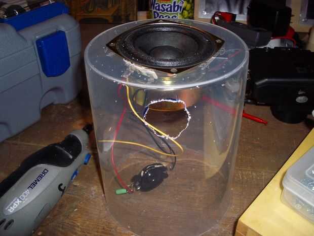 Quitar el altavoz de su caso. Mina tenía este tweeter poco tratar en él. Así que corté dos agujeros en la cubierta de la caja de CDR. Uno en la parte superior para el altavoz y otro en el lado para el tweeter.
