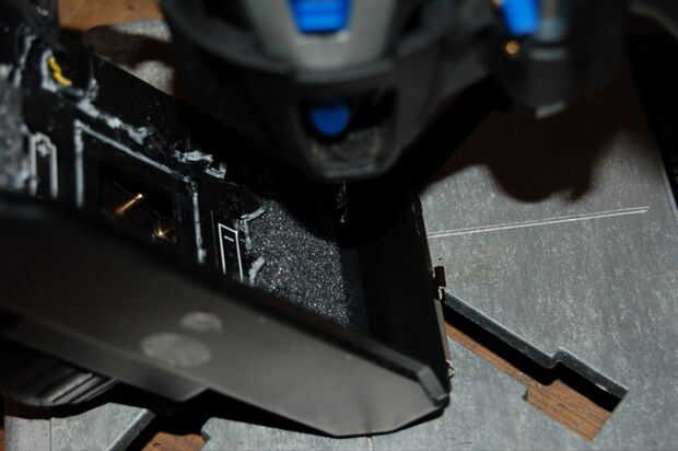 Los agujeros deben estar en los rincones del cuerpo para dejar espacio para el kit de reproductor de mp3 en. Ver foto #2 para la ubicación.