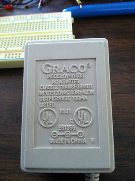 Puede o bien utilizar la opción de batería de 9 voltios o hacer como hice yo y utilizar y vieja fuente de alimentación de 9 voltios que tenía de otra cosa.