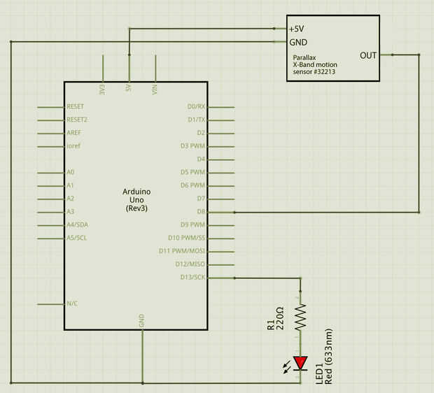 Vamos a conectar el sensor de movimiento para el Arduino y añadirle un LED, para mostrar que algo fue detectado por el sensor de movimiento. Puede dejar hacia fuera la parte entera de la LED, pero siempre es divertido cuando algo aparece.