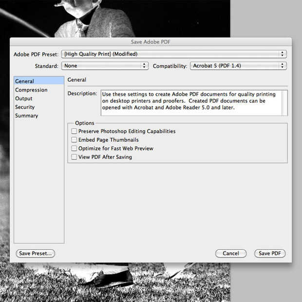 Guardar la imagen en formato PDF. Nunca sabes qué software de la impresora negativa tendrá, por lo que los archivos PDF son una opción segura.