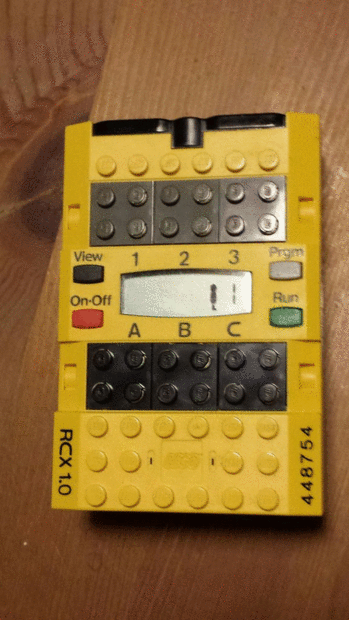 Este set de Mindstorms es la versión 1.5, que incluye un ladrillo RCX que no tiene un conector de alimentación externa. Había conectado 6 pilas AA y trató de encender. Todo funcionaba por lo que he probado los sensores. Cuando conecte y presione los sensores de presión, una pequeña flecha aparece en la pantalla por debajo del número que el sensor está conectado a. He conectado un motor en el puerto del motor y ciclos a través de los programas que ya fueron salvados en el RCX. He encontrado un programa que funcionó el motor adelante y había parado si usted presiona el sensor de presión.