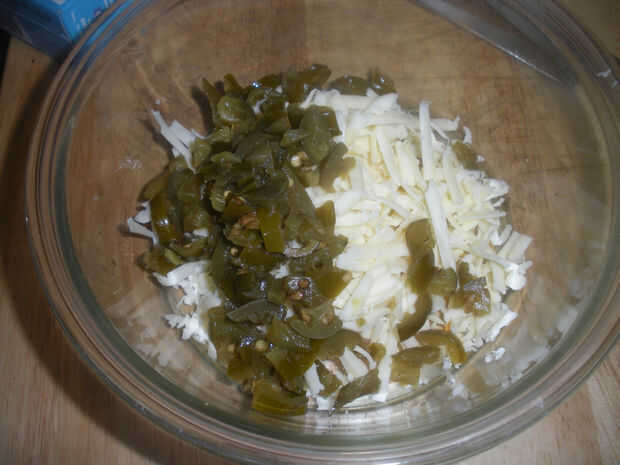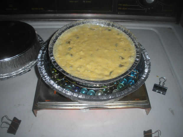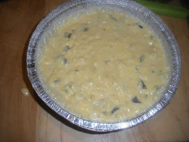 Hacer pan de maíz queso Cheddar y Jalapeño en el almacén del dólar vela horno (3 / 4 paso)