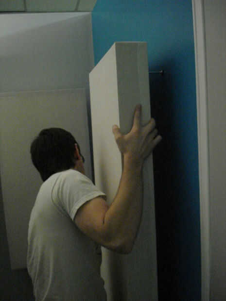 Colgar el panel terminado con el gancho. Uso un nivel enderezar el panel.