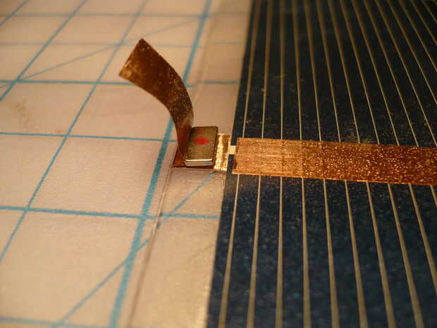 Ahora doble la cinta de cobre. Asegúrese de que fuertemente los contornos a los ángulos de 90 grados del imán.