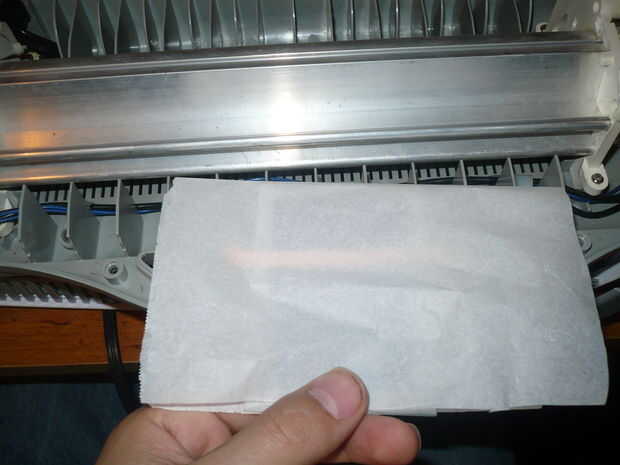 Coloque el ensamblaje entre pedazos de papel de pergamino para mantener los rodillos de la laminadora limpio de EVA derretida y pegamento de la cinta de cobre.