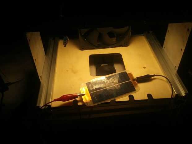 Había conectado a nuestra plataforma solar poco y bajo y behold, el panel de poner 208mA en 3.7V en el máximo punto de energía, o .75W. ¿Bastante bueno, no es eso la derecha, tipo Solar Chill?