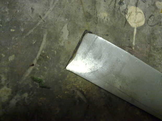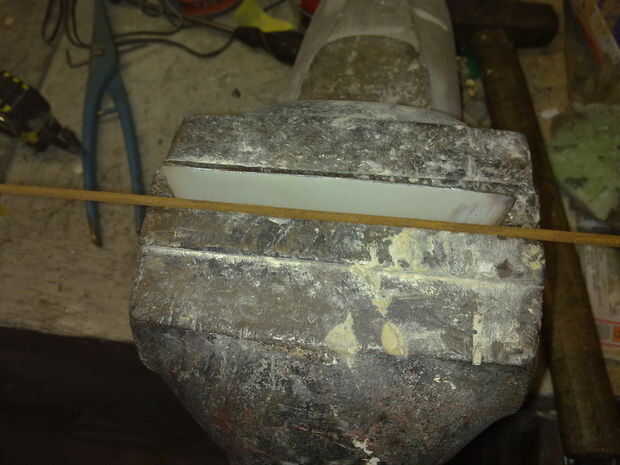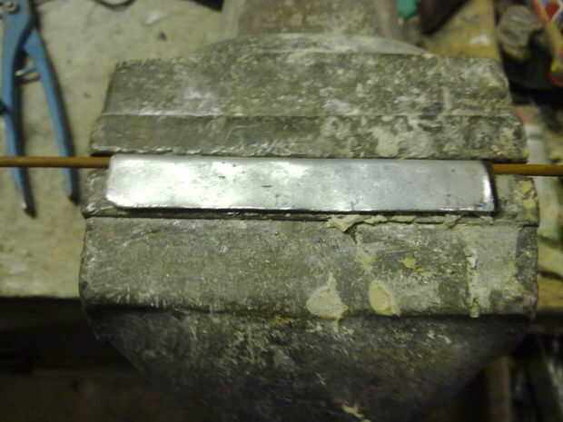 Primero elegir alguna pieza de chapa de hierro - utilicé uno de la vieja carcasa del ordenador. Ahora corte un pedazo de 10 cm de largo y 3 cm de ancho. Afinar uno de los extremos. Poner con una barra de metal a la "pinza" y usando un martillo - doblar. Ahora sacarlo y ponerlo como se muestra en la fotografía. Tomar la barra y comenzar tirando hacia arriba y mientras tanto apretar la "pinza" - puede que necesite alguna ayuda en este momento.