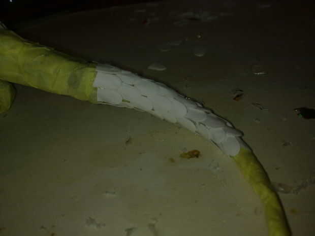 Ahora tus escalas y usando la pistola de pegamento caliente pegamento en su lugar. Desde el final de la cola y continuar hacia arriba. Dejé la cabeza y el extremo de la cola sin escalas porque quería hacer herramientas más pequeñas para escalas más pequeñas.