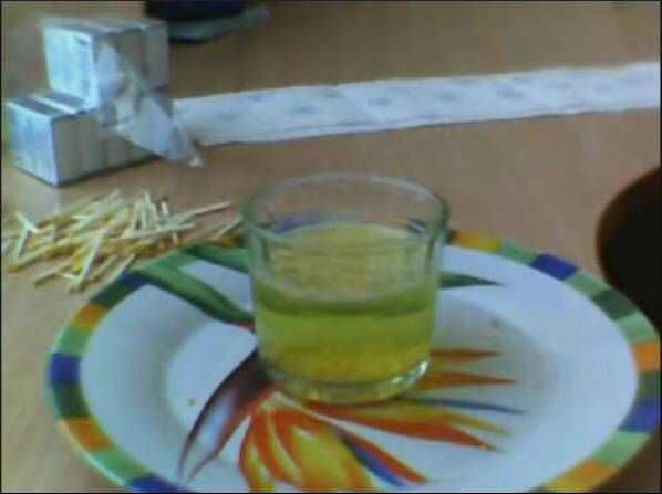 En un pequeño de vidrio, vierta en el agua (uso cuánto quieres), te recomiendo no usar demasiado, cuánto se necesita. tener a los partidos y a moler el polvo en la parte superior, no en los partidos todo. No use demasiados partidos, porque podría quemar el papel en lugar de humo. Revuélvalo y listo.