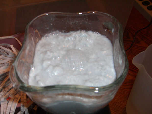Funcionar la licuadora a velocidad alta hasta que la mezcla esté espesa y casi mirando también como cemento mojado.