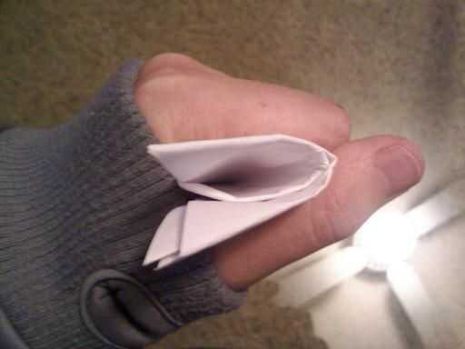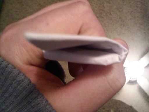 tomar la parte superior que sólo doblado para arriba y ponerla en la derecha del espacio en la fuente de la misma. Es menos complicado en las fotos así que echa un vistazo a ellos.