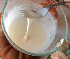 Ya que tienes 30 minutos libres, prepare el glaseado. Mezclar el azúcar impalpable y el jugo de limón hasta que quede lisa y coloque a un lado hasta que lo necesite.