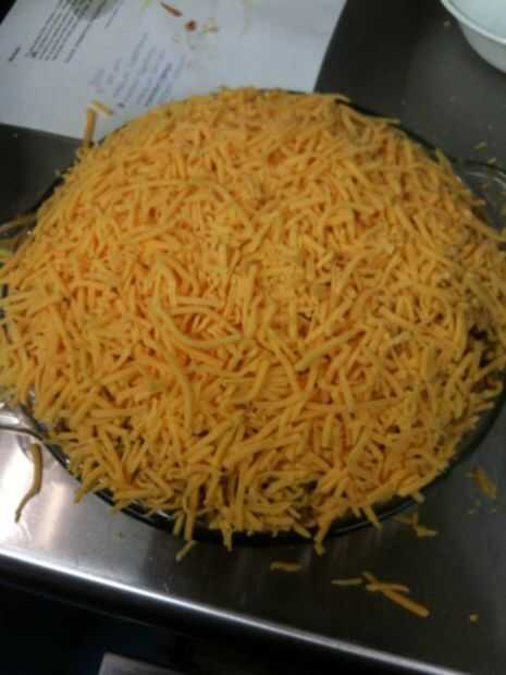 Cubrir el pan de maíz con los lotes de pollo mezcla y espolvorear de queso en la parte superior. Encender el horno alto y poner la tarta en el horno durante unos 3 minutos o hasta que el queso se haya derretido.