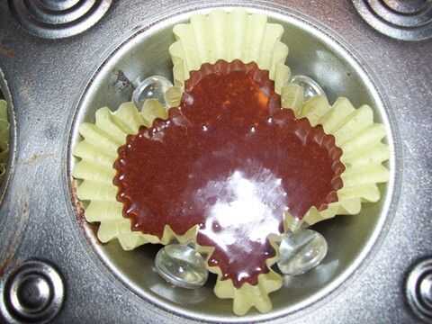 Para crear indentaciones en los cupcakes que se forman, usted estará poniendo canicas entre el pan y el papel de forro. Poner dos juntas para formar el tallo. Coloque dos más difusión hacia fuera de cerca de 1/3 la distancia entre el resto del círculo (ver imagen).