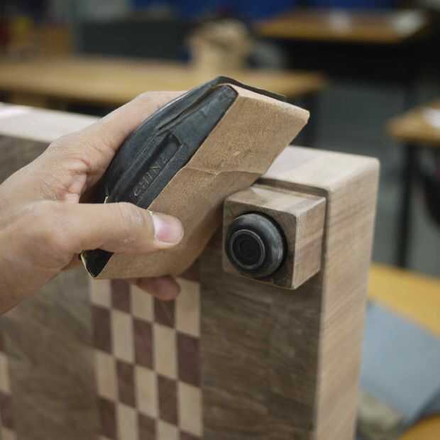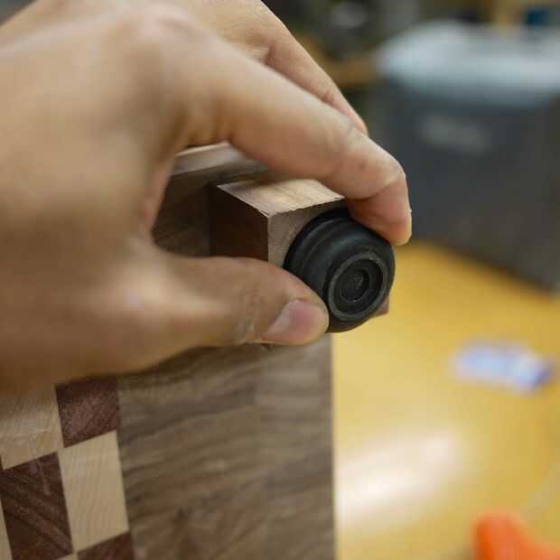 Después de hacer los pies, acabar con ellos utilizando el mismo método que el resto del bloque del carnicero. En mi caso, había lijado el bloque de carnicero a una lija de 220 y planeaba usar aceite mineral llano para acabado. He seguido este tratamiento con las piernas y el cuerpo