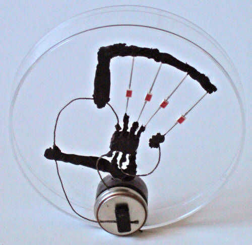 En este circuito utilicé hilo conductor para proporcionar energía de las baterías. Hilo conductor es flexible y se pega bastante bien, pero usted también podría utilizado alambre estañado. Imanes en frente y espalda, sujete el hilo conductor de las dos baterías y actúan como un soporte de la batería.