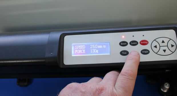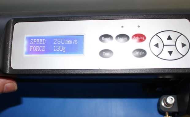La máquina no funciona si el botón "salir" es el, así que pulse de nuevo para apagar. También puede hacer el cuchillo empezar en cualquier lugar en el vinilo mediante el botón salir y golpear reset cuando el cuchillo está en la posición que desee.