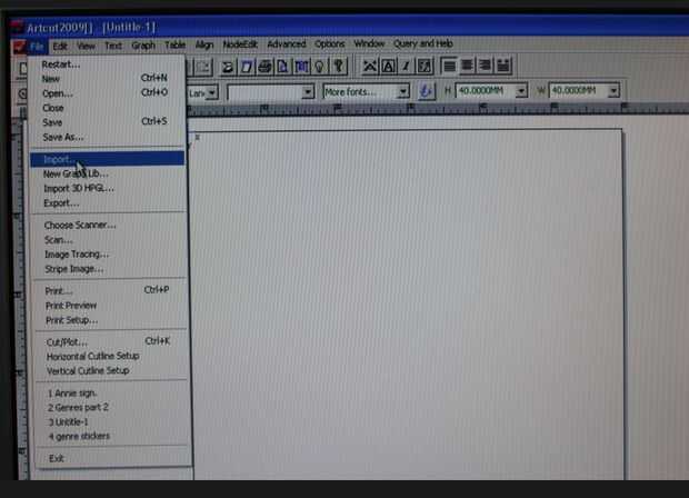 Ahora puede empezar a cortar. Abrir Artcut y la 2 º pantalla le permitirá elegir el tamaño de tu vinilo.