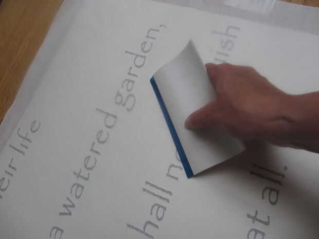 Esas flores que tenían espacios en el diseño y el texto cubrió con cinta de aplicación en un rollo tan amplia como el vinilo. Usé una rasqueta - adherir la cinta de aplicación en la parte superior, manteniéndolo enseñó y trabajando desde el centro hacia fuera y hacia abajo hacia mí. Esto mantiene la integridad de los espacios y facilita mucho la aplicación final.