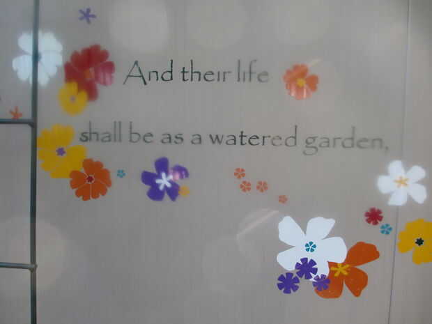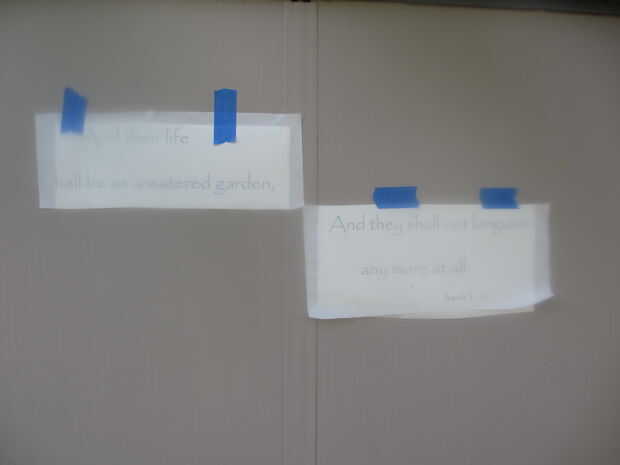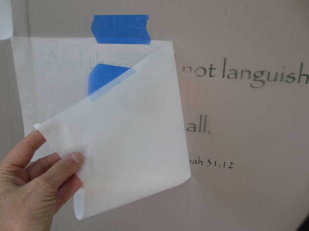 Podría se utilizado cinta azul para poner las flores, pero en cambio solo que tu antojo su forma y coloca las flores al azar. Encontré eso tener cinta de aplicación impidió que estirar el vinilo y era mucho más fácil de colocar. De esas flores que no tienen el recubrimiento de la cinta, he aprendido a colocar las flores en sus centros y suavizar cada pétalo del centro a la punta.