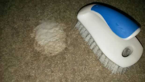 Rocíe el enchufe y su región circundante con el quitamanchas. Utilice el cepillo para trabajar a través de las fibras. Primero frote de izquierda a derecha y luego hacia arriba y hacia abajo. También frote en círculos. La idea es combinar las fibras en su dirección y el color. En mi caso, utilicé un trozo de alfombra nueva que era un poco más limpio que el entorno para que el color no era perfecta. Este conjunto se encargará de eso.