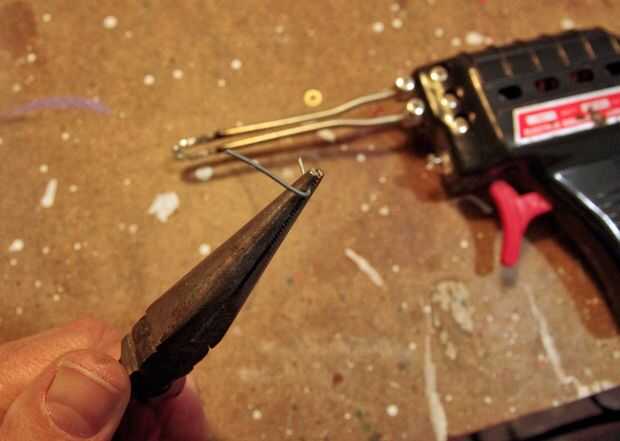 Vamos a colocar un pedazo de alambre en la punta de la pistola soldadura hierro para actuar como un Consejo más pequeño, secundario. Cortar un trozo de alambre un poco más largo de lo que crees que necesita y doblar con una pinza para listo para la fijación a la punta del soldador.