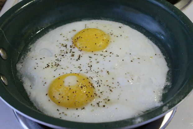 Utilice una espátula para aflojar los huevos de la sartén.