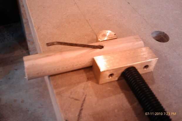 Usar las cuchillas ligeramente doblar un extremo del alambre y Inserte el otro extremo en el orificio hecho en la espiga de madera. Puede usar las cuchillas para aprovechar el hilo para que quede apretado en el agujero.