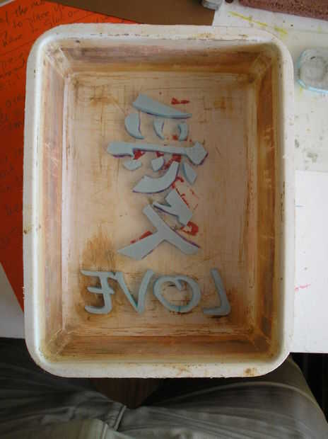 Pegamento las piezas que cortamos en la máquina de hotwire en el fondo del molde. Use el espejo para verificar la alineación, como todas las piezas se invierten! Al mirar en el espejo, la inscripción debe aparecer como en la final de la pavimentadora. Permiten estos pegado en pedazos durante la noche si es posible.