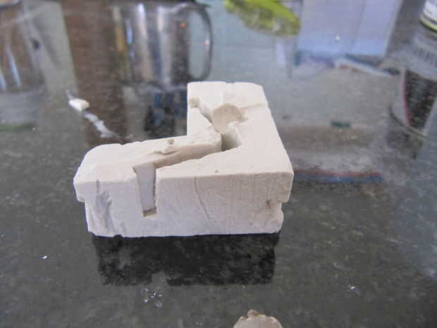 Había sumergido el molde poroso en agua con la esperanza de que un molde mojado haría salir la plastilina más fácil.