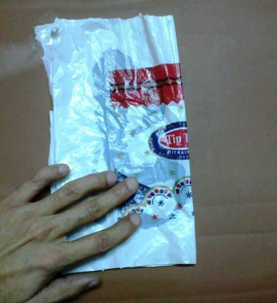 Doble la parte de la lámina de plástico que es gratis, sobre la línea central.